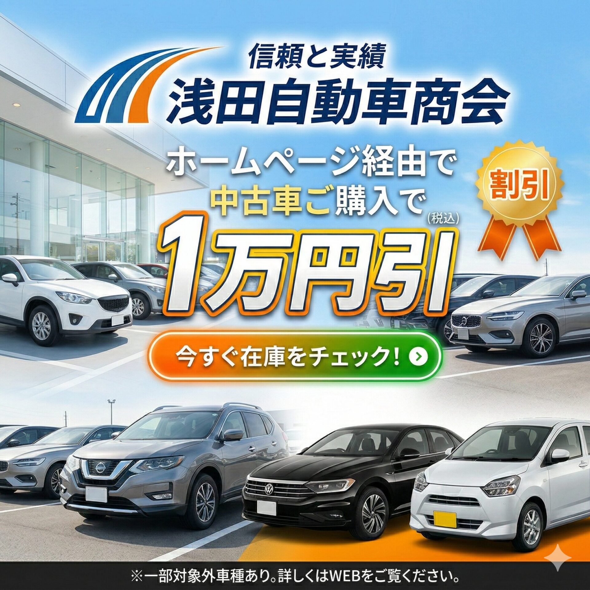 ホームページ経由の中古車ご購入で10,000円引!